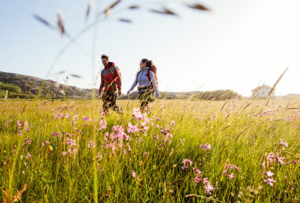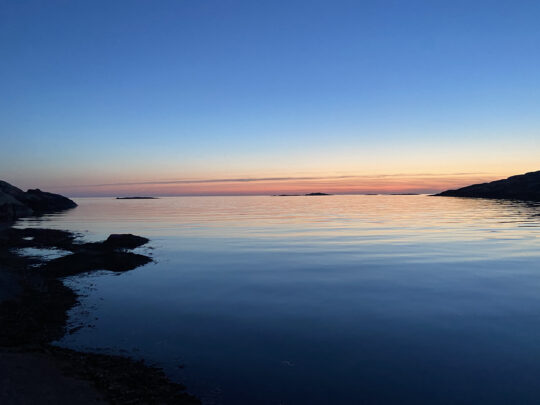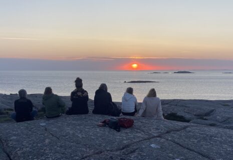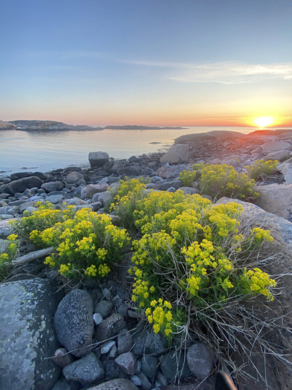 Sista vandringsdagen kan med fördel inledas med ett morgondopp innan det är dags för resans Grand finale. Idag ska vi vandra på västsidan av Ramsvikslandet, över de röda granithällarna, längs den obrutna horisontlinjen av västerhavet och de skira ängsmarkerna som ligger insprängda mellan bergens klåvor. Vi korsar återigen Sotekanalen och går på stigar vi själva letat up fram till det genuina kustsamhället Hunnebostrand. Här äter vi en god 3-rätters middag och tar oss sedan tillbaka till Ramsvik för ännu en försommarnatt nära havshorisonten.