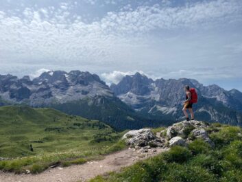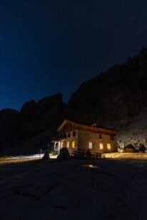 Vi tar oss till starten av vandringen och går upp till Rifugio Graffer som blir vårt första natthärbärge. Vi går i lugn och stadig takt och njuter av de omgivande dramatiska vyerna. Väl framme på hyttan äter vi middag och bekantar oss med italiensk alpinkultur.