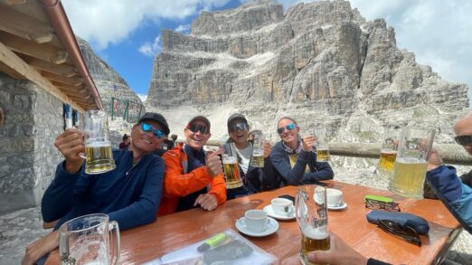 Det som sedan återstår är att lämna utrustning och sen installera oss i våra rum och en efterlängtad dusch och lite mjukare skor och fräscha kläder! Vi avslutar med en lite kortare genomgång och fest! Viva Italia/Via Ferrata.