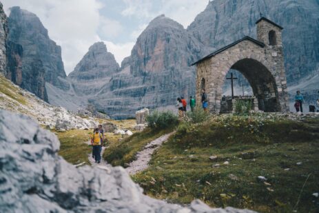 Nu har vi en lite mer avslappnad men härlig vandringsdag framför oss. Vi kommer att gå längs med de lite lägre belägna lederna och strövar ned till Rifugio Brentei för lunch där vi också besöker ett litet kapell tillägnat alpinister. Stärkta av andlig spis vandrar vi sedan uppåt till den vackert belägna Rifugio Alimonta där vi ska övernatta. Hyttan ligger vid foten av Sfulmimi Glaciären och utsikten är magnifik. Vi installerar oss, äter middag och planerar inför nästa dags Via Ferrata.
