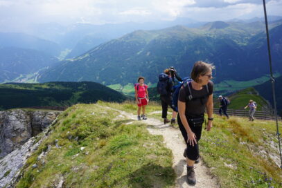 Vi förflyttar oss med buss (35 min) till Schmirn och påbörjar vår vandring i en av Tyrolens mest avlägsna och natursköna högalpina dalar. Vandringen tar oss längst in i Schmirndalen till Kluppe-Almerna, där vi fortsätter upp genom gles skog och typisk alpin vegetation. Vi når en grön kam som leder till Durrach (2190m), med en fantastisk utsikt över Kleiner Kaserer och Olperer (3.476 m). Dagen avslutas på ett mysigt Gasthaus där vi njuter av en god fika på en idyllisk alpäng.