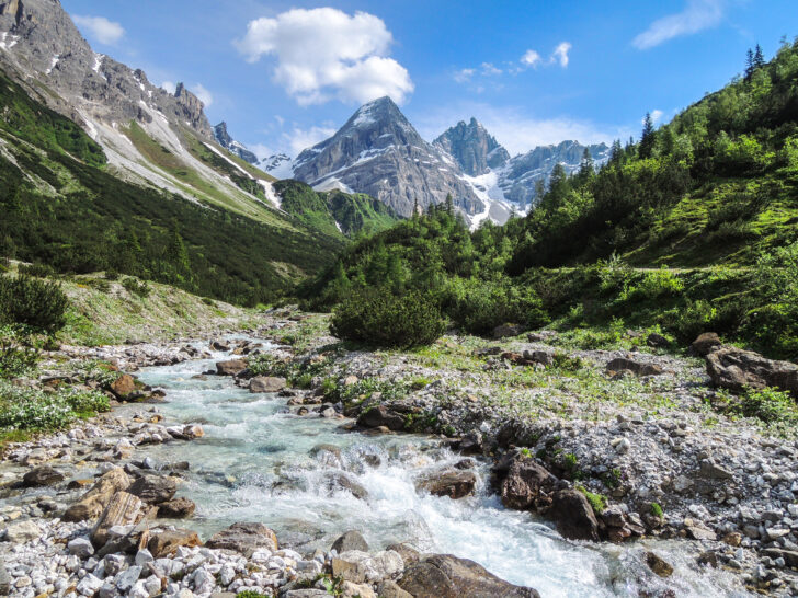 Från Almis Berghotel, beläget på 1 400 meters höjd, startar vi vår vandring och går uppströms längs med den glasklara bergsbäckens tills dess källa, den vackra Obernberger Sjön. Det är en av Tyrolens gömda naturskönheter. Från sjöns alpängar följer vi stig 94 upp till Portissen, där de branta Tribulaun-sluttningarna skapar en storslagen fond. Efter att ha korsat den lilla bäcken vandrar vi vidare till Steineralm, en idealisk plats för en fikapaus med hemlagade delikatesser. Här kan vi njuta av lokala, prisbelönta ostar tillverkade av Sennern, sonen till ägaren av Almis Berghotel.