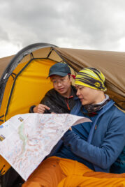 Tidigare erfarenhet av vandring i stenig terräng är bra. Likså vana av att bära sin egen utrustning och använda stormkök.