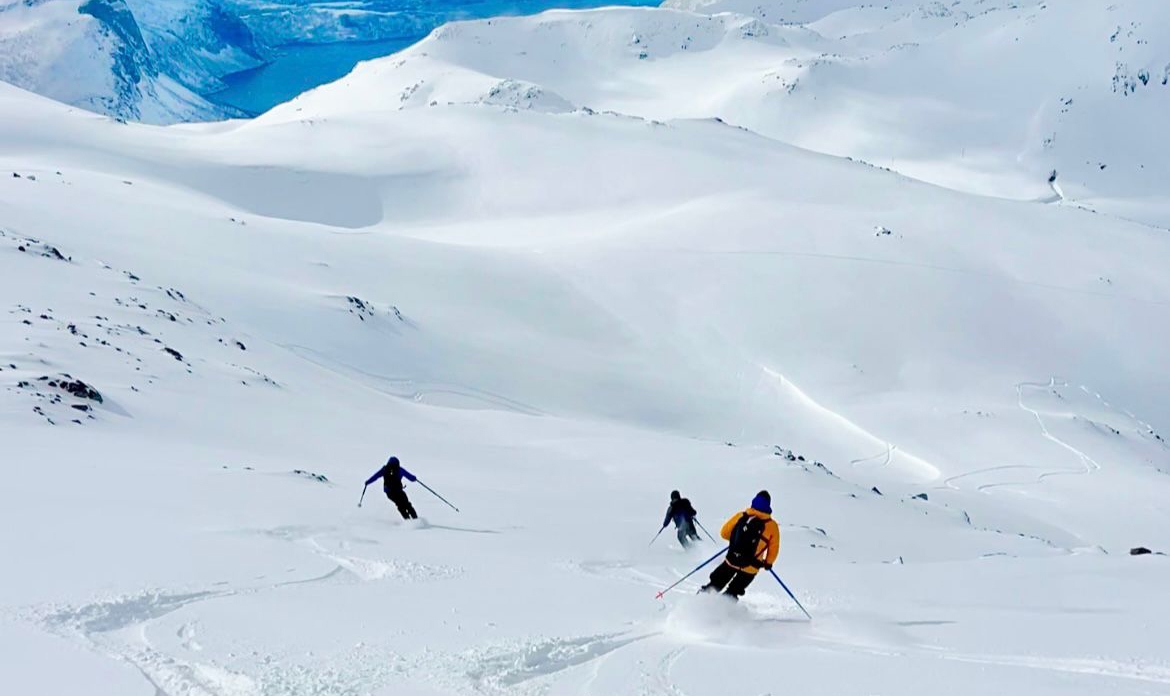 Här väntar toppturer i världsklass med varierad åkning: breda öppna snöfält, smala rännor, fjällskog och drastiska glaciärformationer. Skidsäsongen sträcker sig från februari till maj, där du under årets tidigare månader kan räkna med kallt puder och vinterkänsla – och senare längre dagar med vårsnö, midnattssol och utsikt som tar andan ur dig.