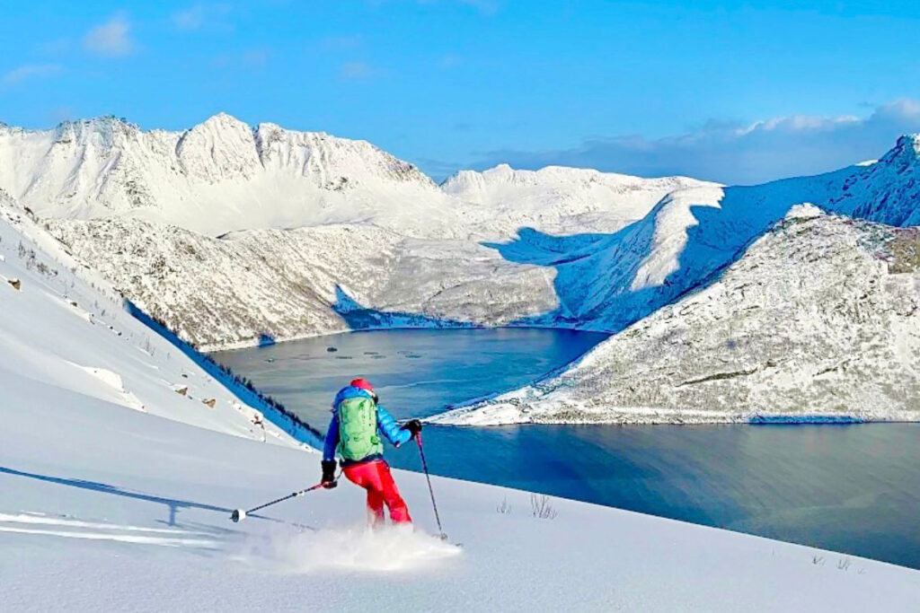 Föreställ dig att börja dagen vid havet och sedan skida upp till en snötäckt bergstopp med milsvid utsikt över glittrande fjordar, spetsiga fjäll och oändlig himmel. Att åka skidor på Senja är något alldeles särskilt – en stillsam men storslagen upplevelse i ett landskap som känns orört, dramatiskt och ja, fullständigt magiskt.