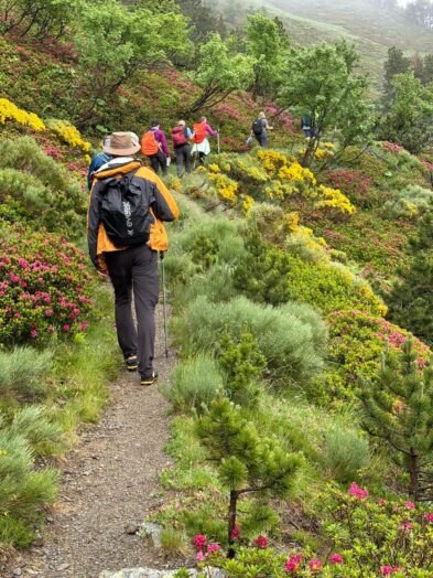 Efter frukost körs vi till Eynedalen (cirka 15 minuter), känd för sin enormt rika flora. Dalen har besökts av många stora botanister genom åren (dock ej Carl von Linné). Något som ställde till det för Kim under hans utbildning (mer om detta på plats). I området finns många förhistoriska lämningar, en indikation på att dalen varit uppskattad för sin artrikedom i årtusenden. Har vi tur är blomningen i full gång, och dalens artrikedom kommer bjuda på många fantastiska färger. Vi äter picknick med vacker utsikt i denna väldigt speciella omgivning, förhoppningsvis med några av dalens många murmeldjur som sällskap. Eftersom vi håller oss i dalen under hela vandringen är det lätt att anpassa längd och höjdmeter efter dagsform. Efter vandringen blir vi hämtade och körda tillbaka till hotellet för lite vila innan middag. Trerätters med vin & kaffe.