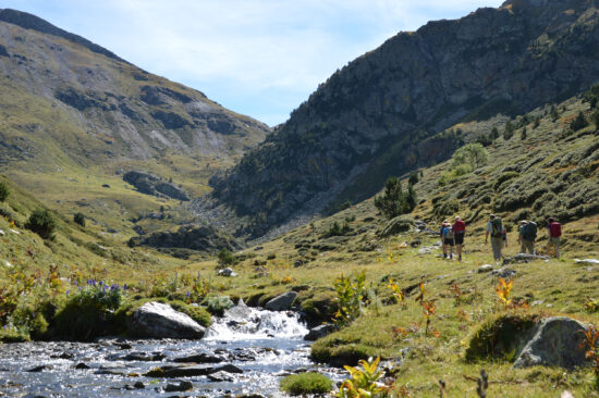 Efter frukost blir vi körda till skidstationen Puyvalador (30 min.) där vi börjar dagens vandring. Vi tar oss upp mot “les Combes”, offpist-eldorado vintertid, där vi har en vacker utsikt över Capçir och le Madres, ett berg där man ofta observerat varg. Vi går sedan ner mot Roc Querubi, en klippvägg som dominerar glaciärdalen “la vallée du Galbe”, känd för sin flora och för att områdets björn passerar här då och då. Vi äter picknick med utsikt över dalen och med Canigou, katalanernas heliga berg, i öster.