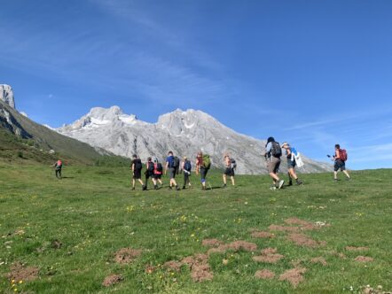 Det är en rätt tuff första dag ” med hög stigning” men för de som vill finns möjlighet att gå upp på Padiorna toppen och njuta av utsikten över massivet. De som vill vila kan vänta nedanför och vi fortsätter sedan i samlad trupp mot kabinbanan som tar oss tillbaka ner till Fuente Dé. Vi kör tillbaka till vårt hotell i Espinama där det finns tid att vila en stund innan middagen.