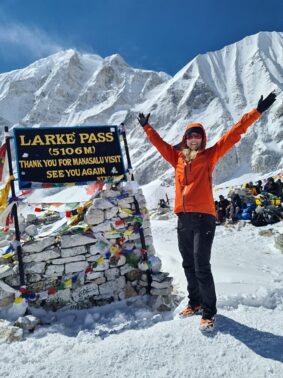Mount Manalsu är beläget i centrala delarna av nepalesiska Himalaya och är med sina 8163 m det åttonde högsta berget i världen. Denna vandring går i en halvcirkel runt detta vackra och dramatiska berg. Turen inledes med med en stigning genom Bhudi Gandaki Nadi River Valley med sina otaliga floder och vattenfall. Redan här börjar vandringen bli utmanade och plötsligt ser vi allt fler jakar i det steniga landskapet.