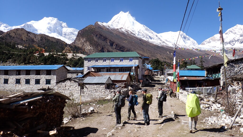 Mount Manalsu är beläget i centrala delarna av nepalesiska Himalaya och är med sina 8163 m det åttonde högsta berget i världen. Denna vandring går i en halvcirkel runt detta vackra och dramatiska berg. Turen inledes med med en stigning genom Bhudi Gandaki Nadi River Valley med sina otaliga floder och vattenfall. Redan här börjar vandringen bli utmanade och plötsligt ser vi allt fler jakar i det steniga landskapet.