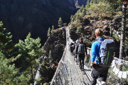 Vi går vidare från Tengboche ned mot Deboche och gör en spännande sektion på en hängbro över Imja Khola. Vi går sedan upp mot Pangboche och vidare till sherpa byn Dingboche. Härifrån har vi fina vyer över Lhotse, Island peak och Ama Dablam. Nu börjar höjden kännas av då vi sover ovan 4000 meter.