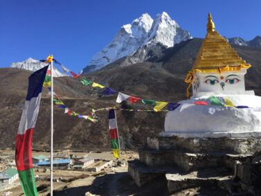 Khumbudalen ligger i nordöstra Nepal och är hemvist för det legendariska Sherpafolket. Sherpafolket kommer ursprungligen från Tibet och är kulturellt mycket nära tibetanerna. Under vandringen kommer vi att bo på enkla Tea Houses som sköts av lokalbefolkningen. Under vandringen går vi även genom ett antal mindre byar.