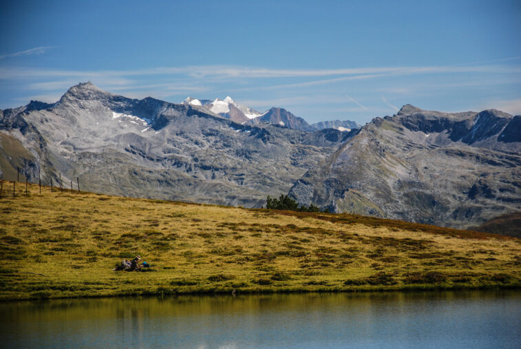 Idag vandrar direkt från hotellet upp till sjön men viker sedan av och går upp till Allerleigrubenspitze. Vi följer kammen till Sandjochpasset/Passo del Santicolo och förtsätter sen på den gamla italienska militärvägen till Flachjochspasset/Passo del Cambio där vi går ner igen genom Frader-dalen till Obernberg.