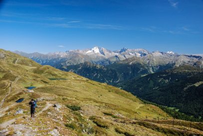 Efter frukost packar vi våra lunchpaket och snörar på oss vandringskorna. Vi vandrar längs en stig till Portjochpasset (2110 m). Därifrån tar vi oss över till Italien och fortsätter längs den österrikiska-italienska gränskammen till Sandjochpasset (2165 m). De som har energi över kan hänga med ytterligare 200 höjdmeter upp till Hoher Lorenzenberg/Monte San Lorenzo (2315 m), det tar ca 1 timma. Vi vandrar sedan tillbaka till vårt bergshotell genom vackra Frader dal.