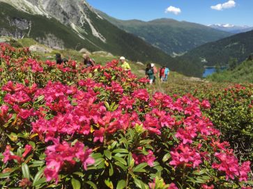Idag har vi en spektakulär vandringsdag framför oss. På förmiddagen går vi upp till den högalpina gränskammen på Sandesjöchlpass som ligger mellan Italien och Österrike på en höjd av 2599 m. Härifrån har vi en fantastisk utsikt över Ötz, Stubai och Zillerdalens snötäckta glaciärberg samt de italienska Dolomiterna. Efter en brant nedstigning följer vi den Tyrolska Höjdstigen (Tiroler Höhenweg/Alta Via) som ger oss en imponerande vy över österrikiska Tribulaun hyttan. Här finns stor chans att träffa på en stenbock eller ett murmeldjur så håll ögonen öppna. De som önskar kan att hänga med på ytterligare en tur på 2 timmar till toppen Garklerin (2470 m).