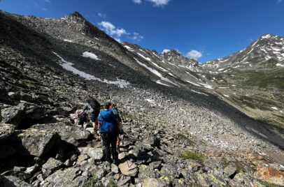 Vi rör oss i en högalpin miljö och går ca 1000 höjdmeter +- i snitt per dag och terrängen är krävande. Du bör med andra ord vara en van vandrare och ha god kondition för att ha glädje av turen.
