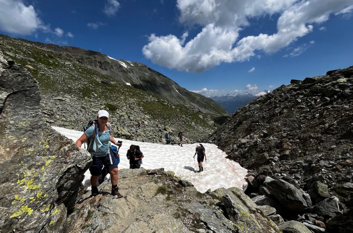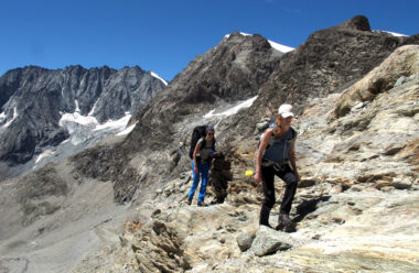 Det är en spektakulär resa genom Alpernas olika vegetationszoner och du går genom frodiga, grönskande dalar som öppnar sig mot dramatiska, steniga bergsmassiv. Stigen tar dig över glittrande glaciärer, förbi spegelblanka sjöar och brusande vattenfall. Varje dag bjuder på nya, hänförande vyer.