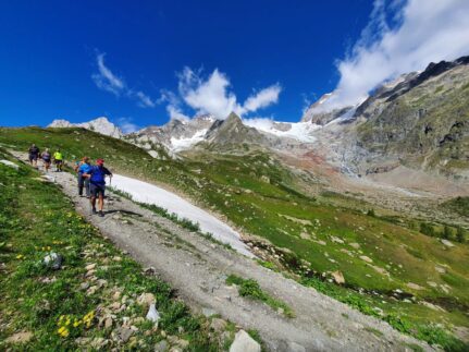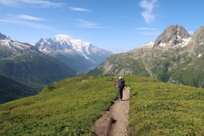 Packning: Ryggsäcken bör vara minimalistisk (följ noggrant den kompletta utrustningslistan som skickas vid bokning) för att maximalt kunna njuta av denna medelsvåra vandring, som kan bli för utmanande om du släpar på för mycket packning. Denna minimalistiska approach gör det möjligt att sova i högalpina stugor och undvika de många motoriserade kilometrar som annars skulle krävas för att transportera bagage runt Mont Blanc via vägarna.