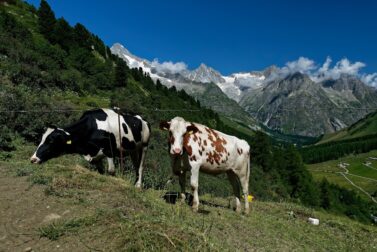 Efter att ha sovit en natt med utsikt över de italienska bergstopparna (och den italienska klättringsvägen uppför Mont Blanc) beger vi oss mot Courmayeur, delvis till fots och delvis med linbana, och vandrar genom staden. Därefter tar vi en buss till foten av Grand Col Ferret, och tar oss upp över toppen och in över gränsen till Schweiz. Vi går ner genom de vackra alpängarna och når vår hytta som ligger på en schweizisk bondgård, där vi kan smaka deras färska och lagrade produkter direkt på plats.