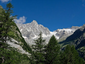 Efter en kort uppvärmningsvandring nedför vid foten av Mont Dolent – ett berg som sträcker sig över tre länder (Fr, Ita, Ch) – når vi byn La Fouly, i skärningspunkten av dessa tre länder. Härifrån tar vi transport direkt till ett pass (Forclaz-passet) där vi gör vår andra 180-graders sväng för att bege oss söderut mot vår startpunkt på den franska sidan av Mont Blanc. Om väder och förhållanden tillåter tar vi en mindre trafikerad rutt med utsikt över vackra glaciärer. Inatt blir det “glamping” då vi sover en natt i rymliga tält med sköna madrasser och täcken.