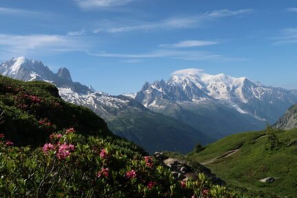 Vi återvänder i långsam takt ner till dalen längs bergskammar, vilket ger oss en fantastisk utsikt över Mont Blanc och hela bergskedjan. Nedanför sträcker sig Chamonix-dalen, och vi kan även se Mont Buet, som tidigare kallades “Mont Blanc des dames”. Vi stannar för en längre paus på en charmig, enkel värdshusrestaurang i ett historiskt, blomstrande litet samhälle på höjderna av Argentière. Därefter återvänder vi med tåg eller buss till Les Houches och resten av dagen tillbringar ni efter egna önskemål. Vi äter sedan en god middag på vårt hotell.